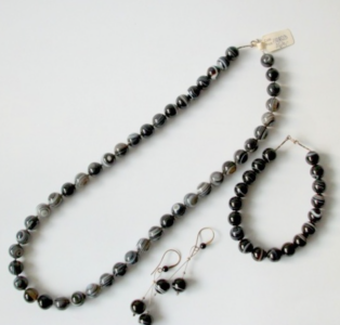 Komplet z ciemnoszarego agatu