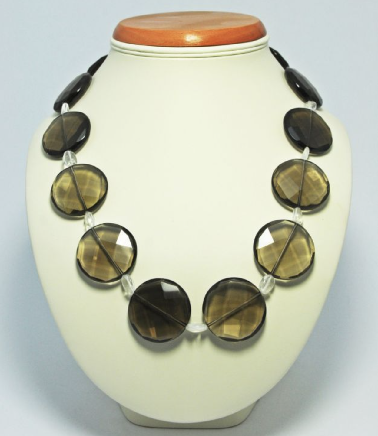 Naszyjnik z okrągłych efektownych kamieni kwarcu dymnego.