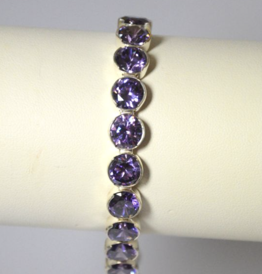 Elegancka, efektowna bransoletka, wykonana z okrągłych, fioletowych kryształów Swarovskiego oraz srebra próby 925. Rozświetli każdą kreację oraz doskonale nada się na prezent.