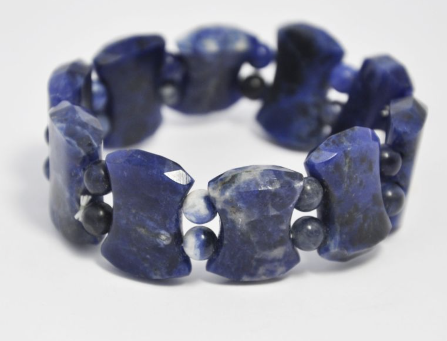 Oryginalna bransoleta wykonana z agatów w ciemnym odcieniu niebieskiego koloru. Bransoletka jest na wytrzymałej, elastycznej gumce, dzięki czemu doskonale dopasuje się do każdego nadgarstka.