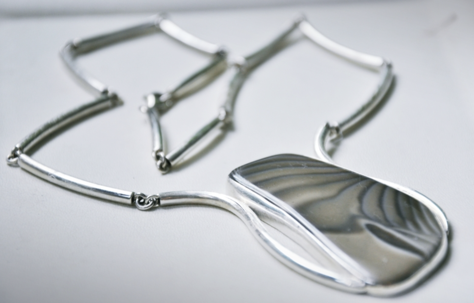 Oryginalna kolia wykonana ze srebra próby 925 z krzemieniem pasiastym.