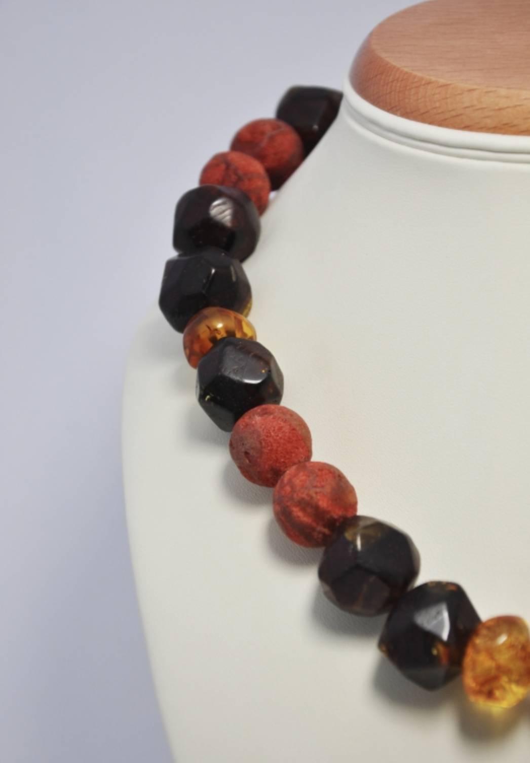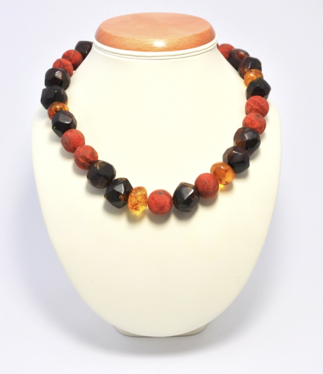 Niespotykany naszyjnik wykonany z lawy wulkanicznej, bursztynu oraz drzewa afrykańskiego