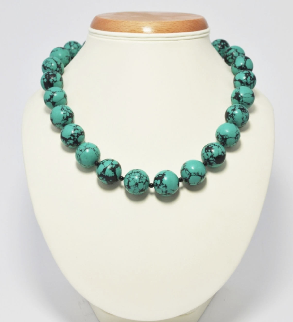 Niezwykły naszyjnik z turkusów. Kamień ten uważany jest jako amulet przynoszący powodzenie i szczęście rodzinne.