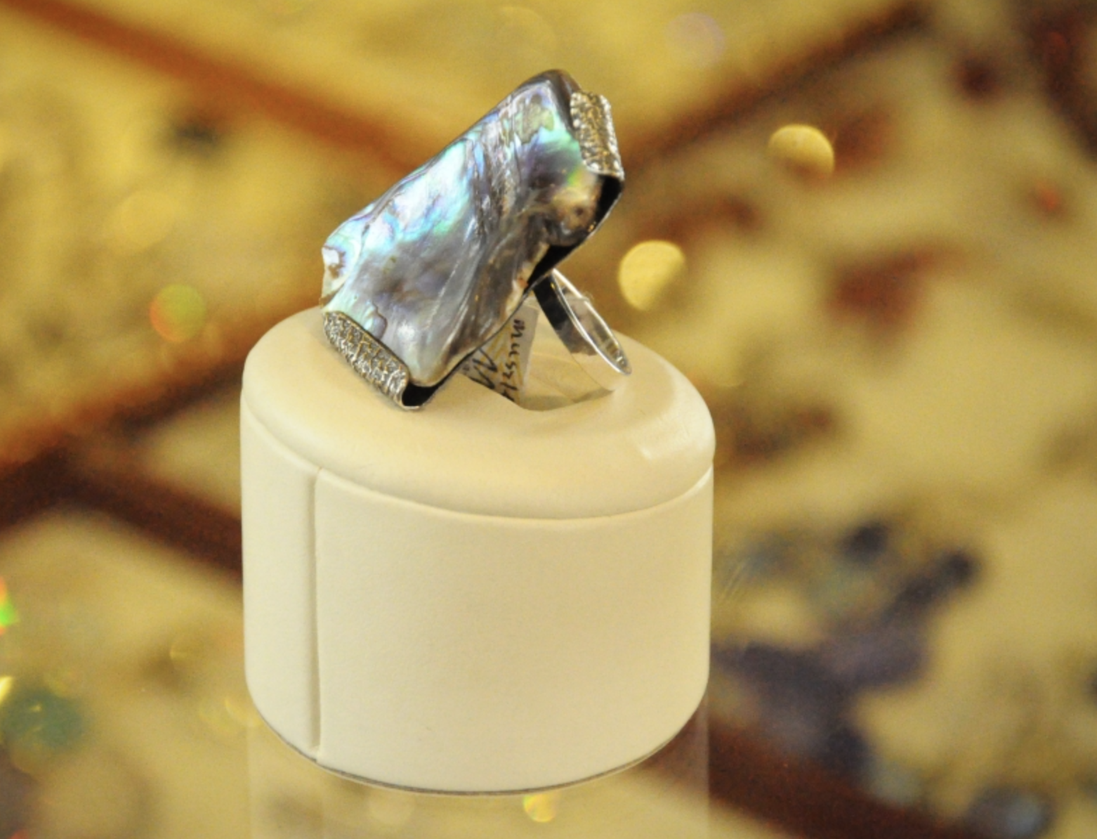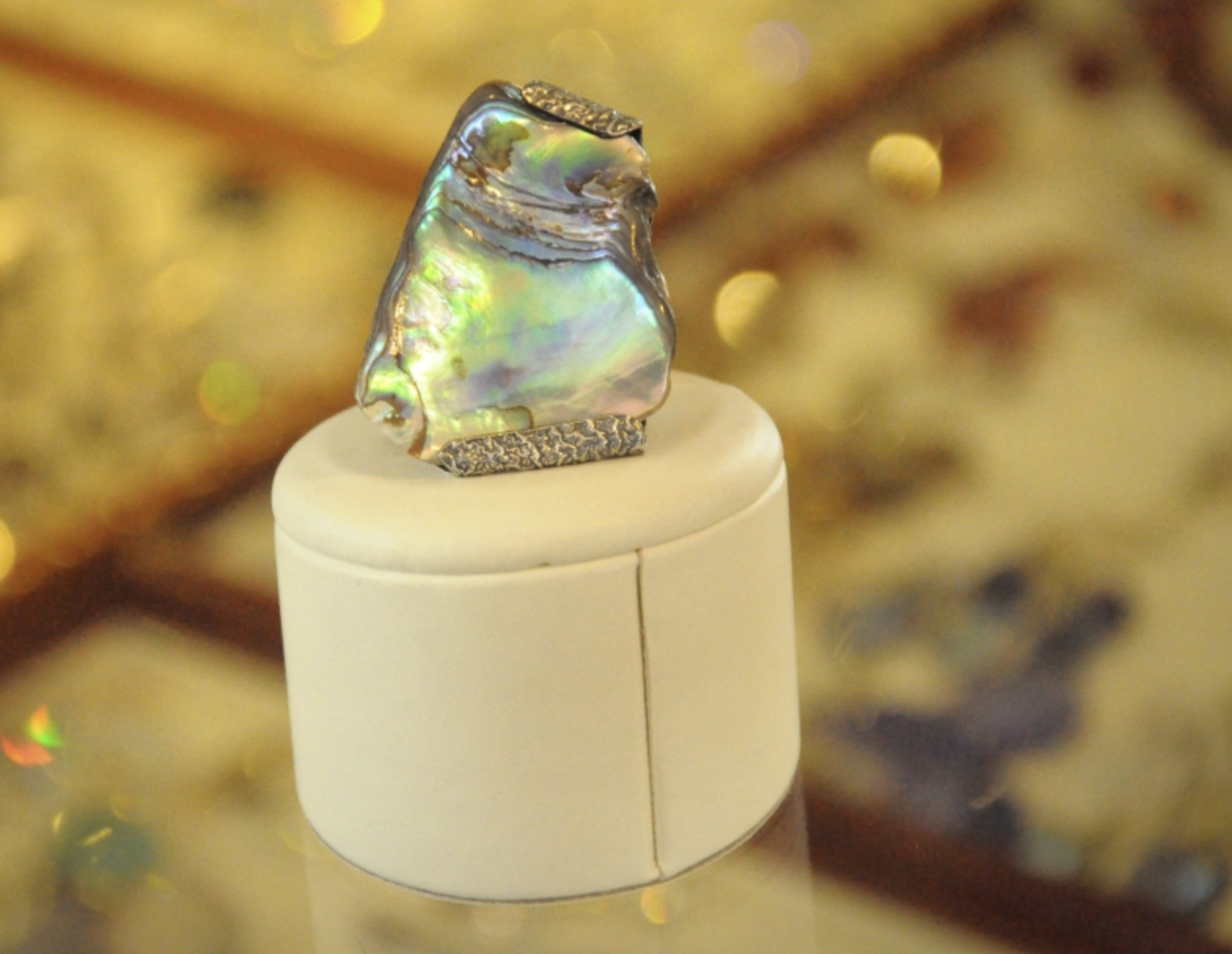 Niepowtarzalny, bardzo efektowny pierścień z muszli. Rękodzieło.