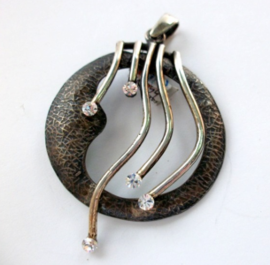 Oryginalna zawieszka wykonana z krzemienia pasiastego wykończona fantazyjnie poprowadzonym srebrem. Krzemień pasiasty- niezwykle rzadki, dekoracyjny dodatek, który doda elegancji każdej kreacji.