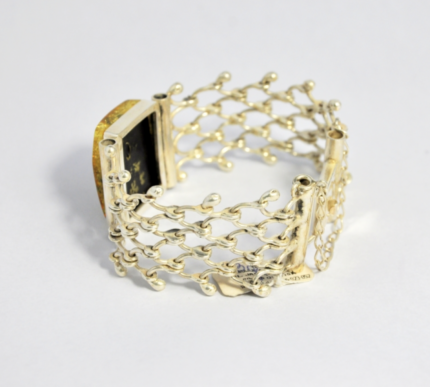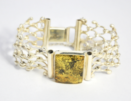 Pleciona bransoleta z zielonym bursztynem