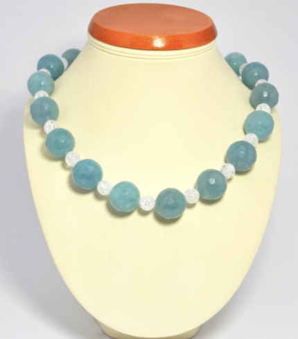 Naszyjnik z akwamarynu i kryształu górskiego