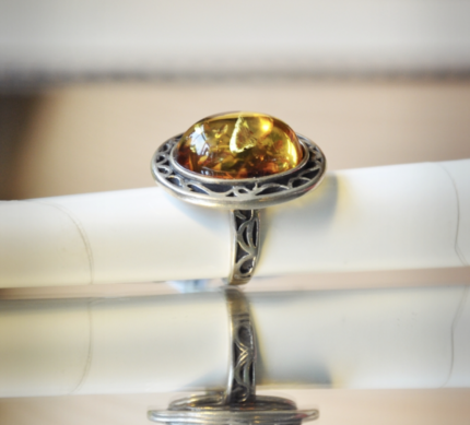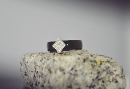 Pierścionek czarny porcelanowy z cyrkoniami – ROMB